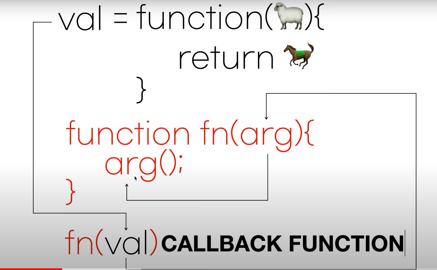 - 위 설명을 보면 val의 경우 즉시 실행되는 것이 아니라, function fn의 매개변수로서 나중에 실행되는 형태를 띄고 있다. 이러한 함수를 콜백(callback function)함수 라고 지칭한다! => 단, 콜백함수는 항상 비동기적으로 실행되는 것이 아니라, 동기일 수도 비동기일 수도 있다. setTimeout()과 같은 함수의 경우 콜백함수는 비동기적으로 실행된다!