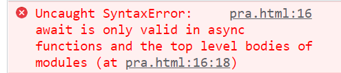 하지만 async 함수 내부에서 작성하지 않는 이상 위와 같은 error message를 표시하게 된다!