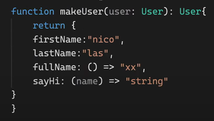 - 물론 interace 또한 type으로 사용될 수 있다 => user:User(interface임)=