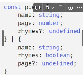 const peom:Poem =Math.random()>0.5 ?{name:"hoin", pages:7}:{name:"otrhes",rhymes:true};