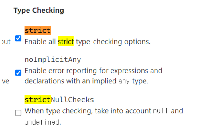 - strictNullcheck을 해제하면 에러 사라짐 ⇒ 이럴 경우 JS 런타임에서 에러가 발생할 수 있음 ().property.length의 경우 (undefined의 length 측정 불가) ⇒ BUT, TS에선 문제 없이 넘어갈 것이다.