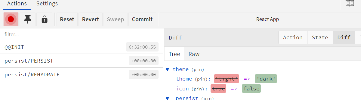 ignoredActions: [FLUSH, REHYDRATE, PAUSE, PERSIST, PURGE, REGISTER],