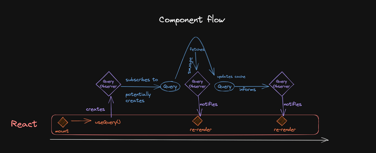 - 컴포넌트 mount => Observer를 생성하는 useQuery를 호출