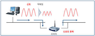 약해진 신호를 증폭하여 다른 쪽으로 전달하는 장치이다.