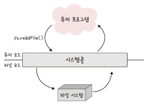 이때 유저 모드에서 파일을 읽지 않고 커널 모드로 들어가 파일을 읽고 다시 유저 모드로 돌아가 그 뒤에 있는 유저 프로그램의 로직을 수행한다. 본 과정을 통해 컴퓨터 자원에 대하 직접 접근 차단 가능 + 다른 프로그램으로부터 보호 가능