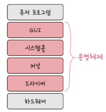 운영체제의 구조 (참고: GUI가 없고, CUI만 있는 리눅스 서버도 존재한다)