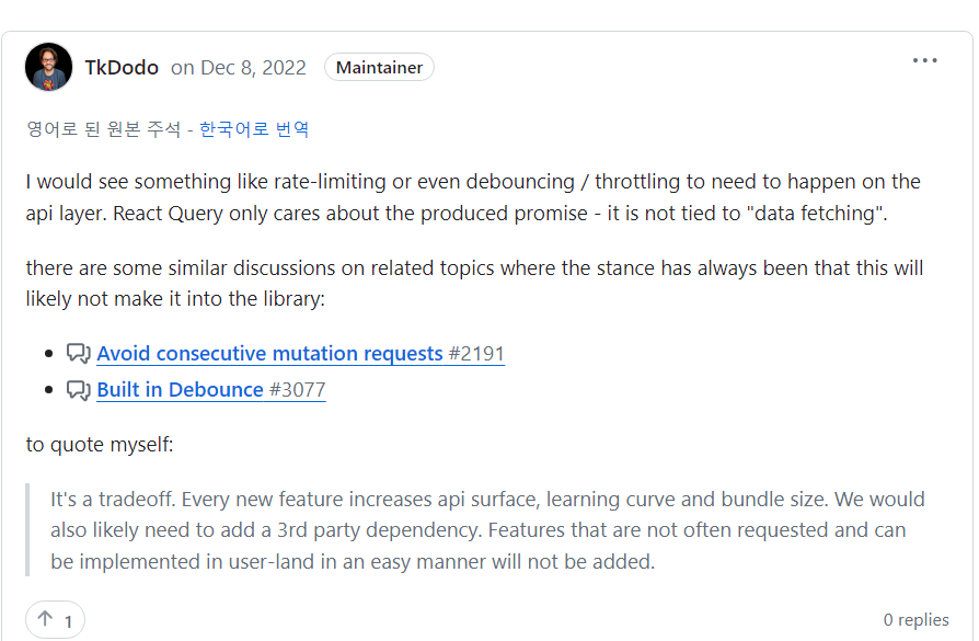 아쉽게도 TkDodo에 따르면 관련 기능은 추가되지 않을 것으로 보인다.