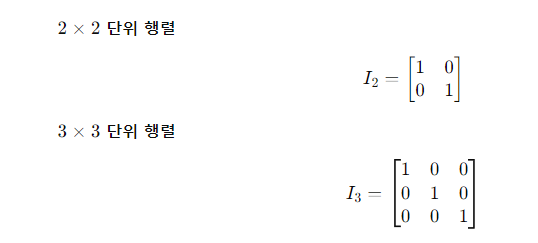 단위 행렬은 대각선 요소가 모두 1이고 나머지 요소가 모두 0인 정사각 행렬이다. 단위 행렬은 보통 로 표기된다.